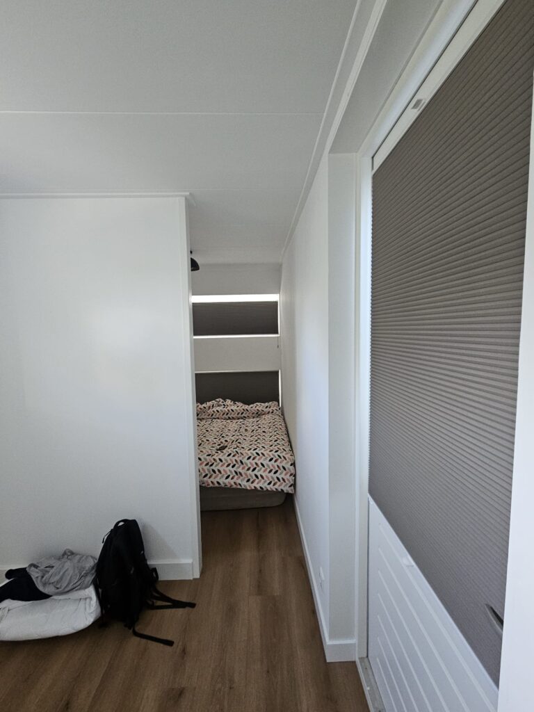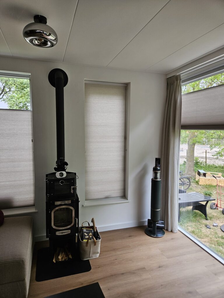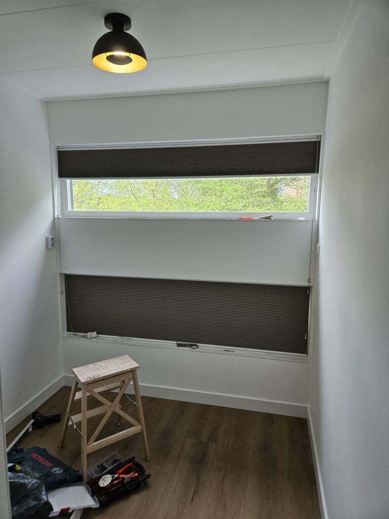 We hebben alle ramen in laten meten door iemand van de Kwantum. Dit is echt een super service. Voor 15 euro hebben ze alle ramen ingemeten en goed advies gegeven. Bij ons ging het om 12 ramen in totaal. Uiteindelijk hebben we gekozen voor Plissé. Het leuke hiervan is dat je het zowel omhoog als omlaag kan trekken. We zijn voor een lichte kleur gegaan beige/taupe om het rustig te houden en boven uiteraard verduisterend.
