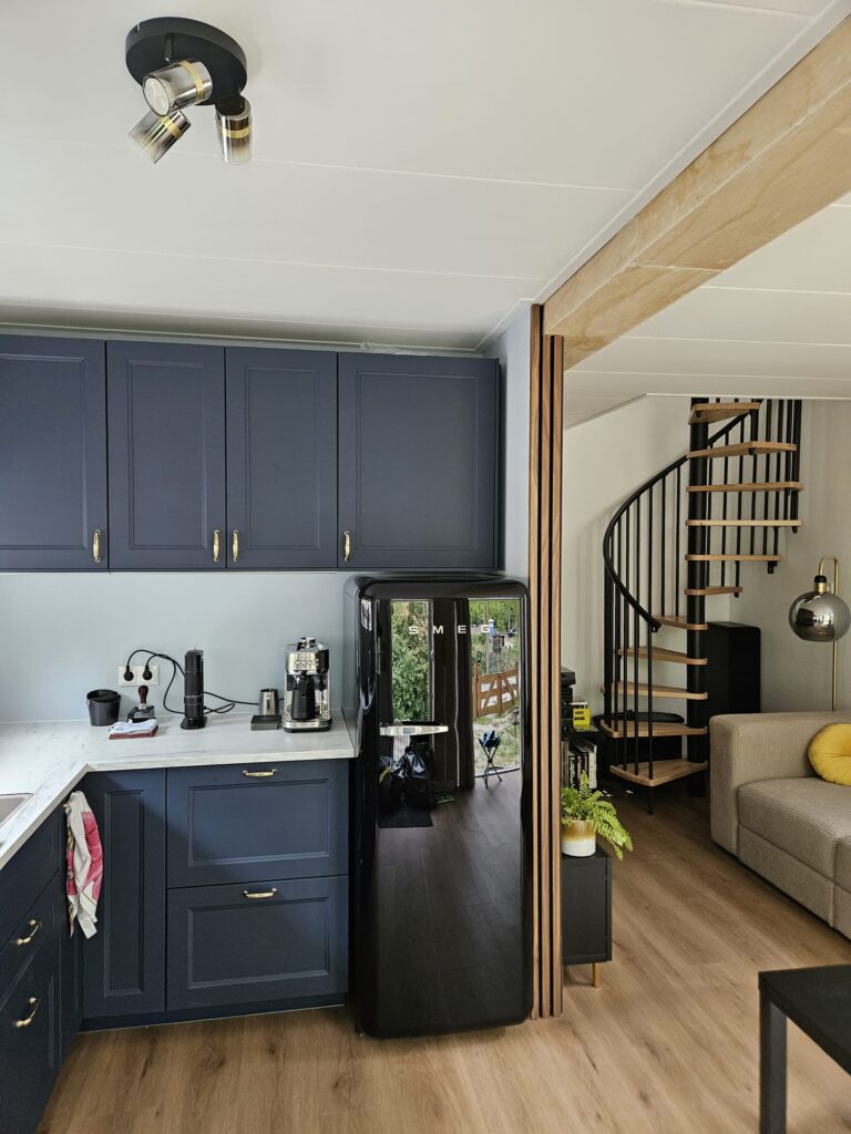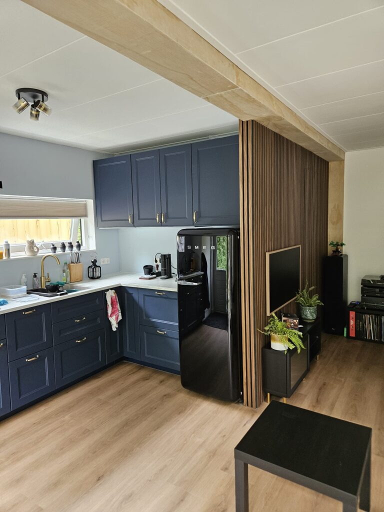 En hiermee begint het huis steeds meer “thuis” te worden. Na de laatste stoffige klusjes werd het ook tijd om de bank te bestellen. Daarnaast werd het tijd voor een koelkast upgrade (zie foto’s hieronder voor het eindresultaat). Ook zijn de eerste nachten gemaakt in het huis, alhoewel het nog wel een beetje als kamperen in eigen huis voelt. Slapen op een luchtbed, je tandenborstel van huis mee en wat kleding voor de volgende dag. Dus de komende tijd gaan we de boel inrichten, op meubeljacht en bezig met de laatste afwerkingen. Maar het klussen is zeker nog niet ten einde. We willen nog een dakterras, een buitenkeuken een veranda voor het huis. Uiteindelijk moet natuurlijk ook de hele tuin worden aangepakt. Dus: To be continued.